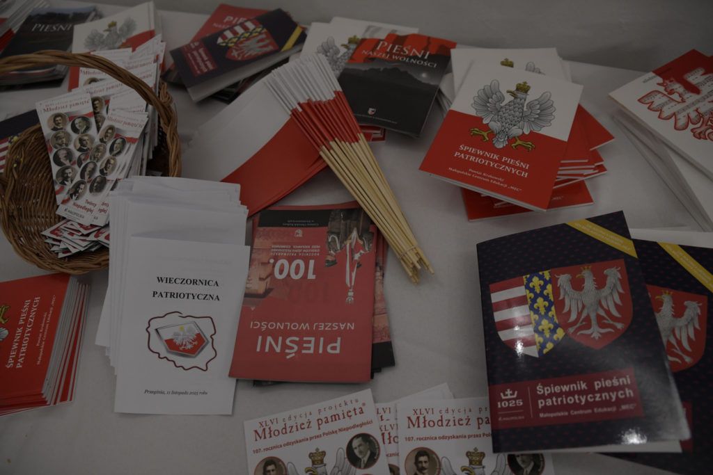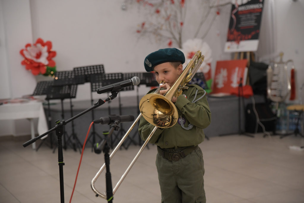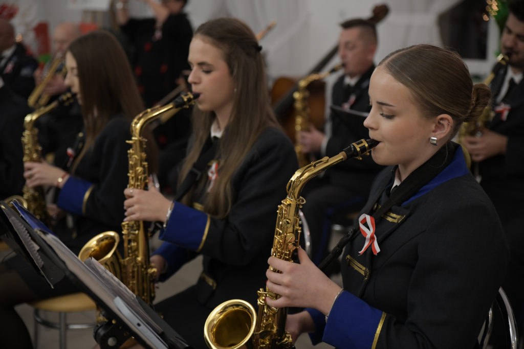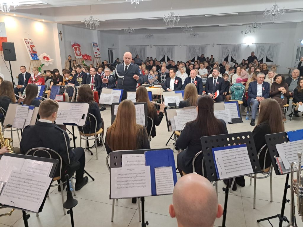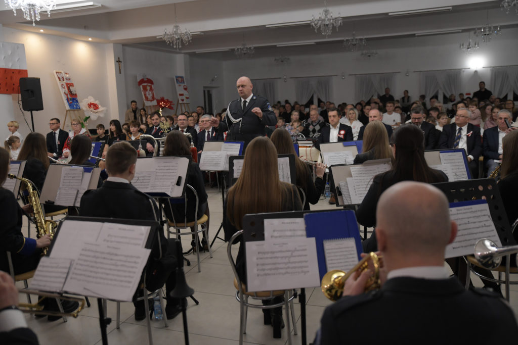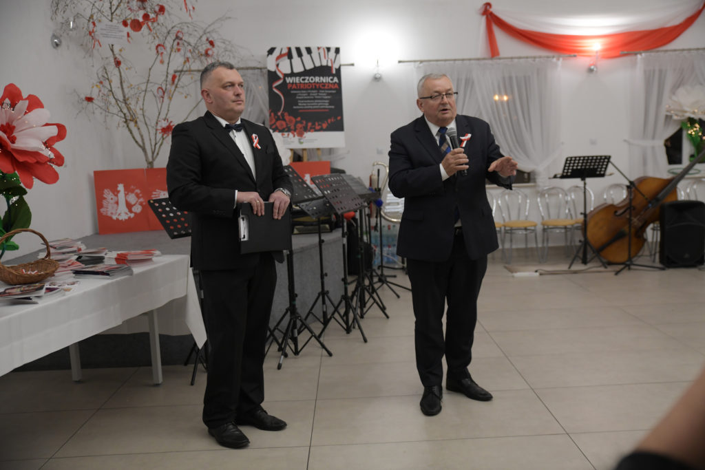Wieczór zakończyło wspólne śpiewanie pieśni patriotycznych z towarzyszeniem Orkiestry Dętej pod batutą Patryka Mietły.