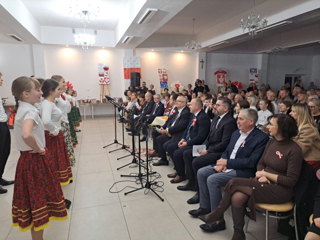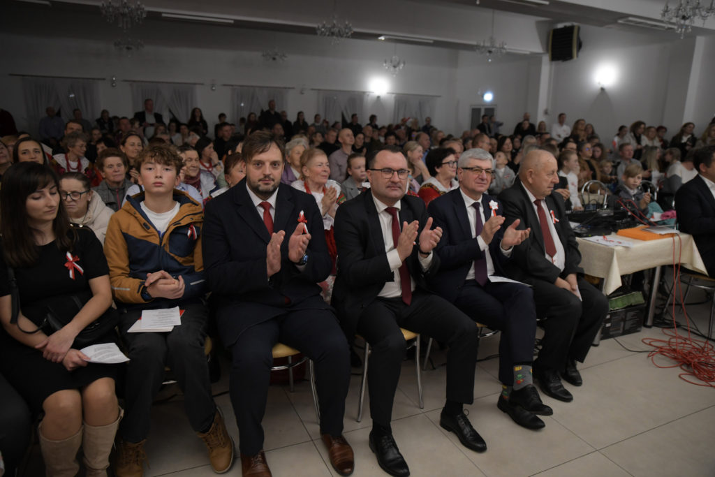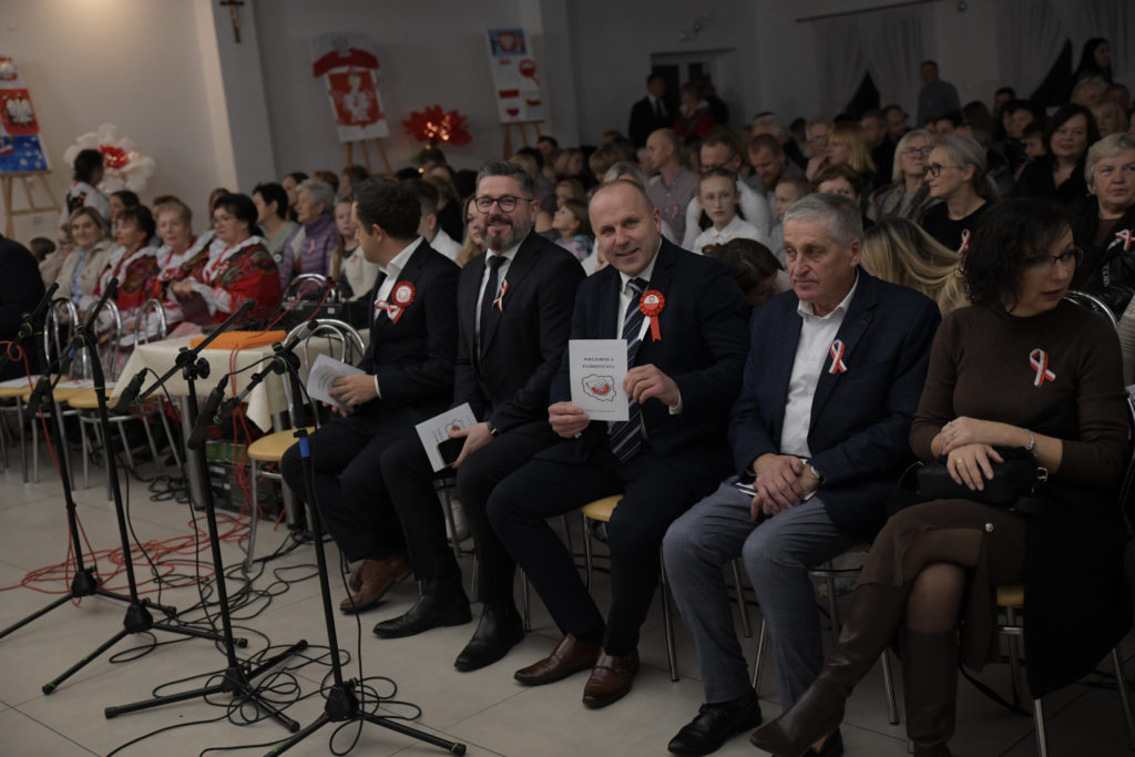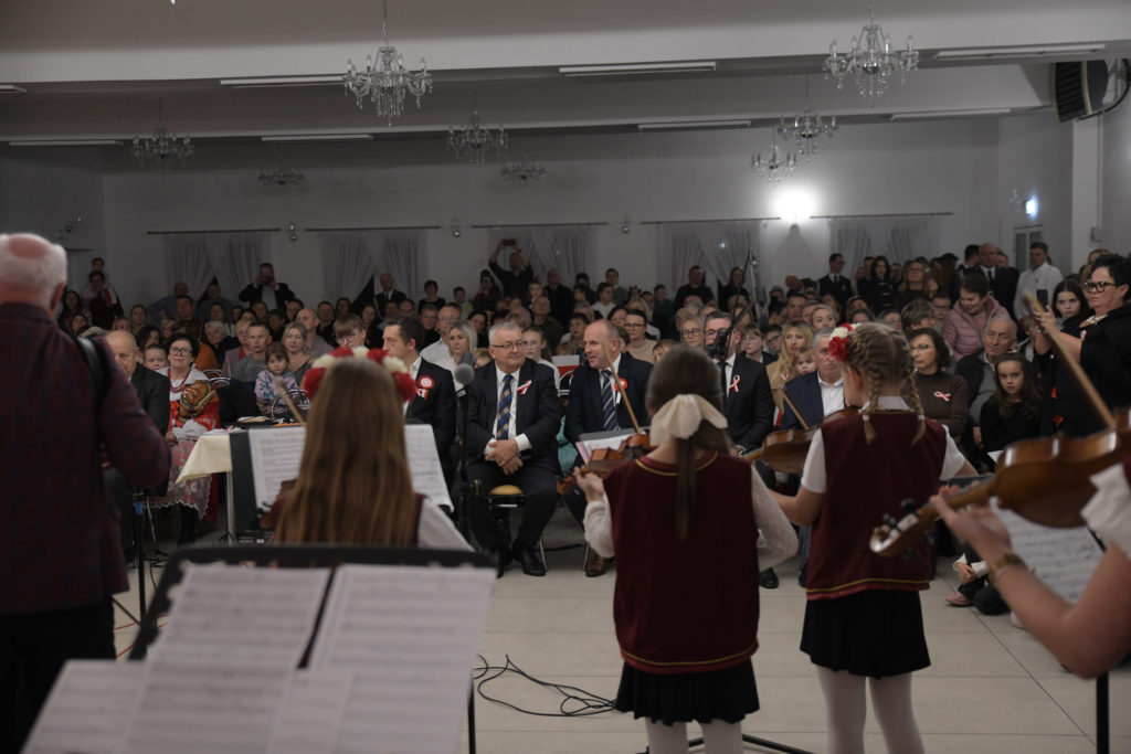 Uroczystość rozpoczęła się od odśpiewania hymnu państwowego przy akompaniamencie Orkiestry Dętej z Przegini.. Po oficjalnym powitaniu uczestników przez Wójta Gminy Tomasza Gwizdałę, rozpoczęła się część artystyczna, która w patriotycznym duchu dostarczyła wielu wzruszeń, dumy i radości z bycia Polakami.