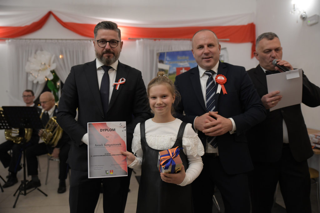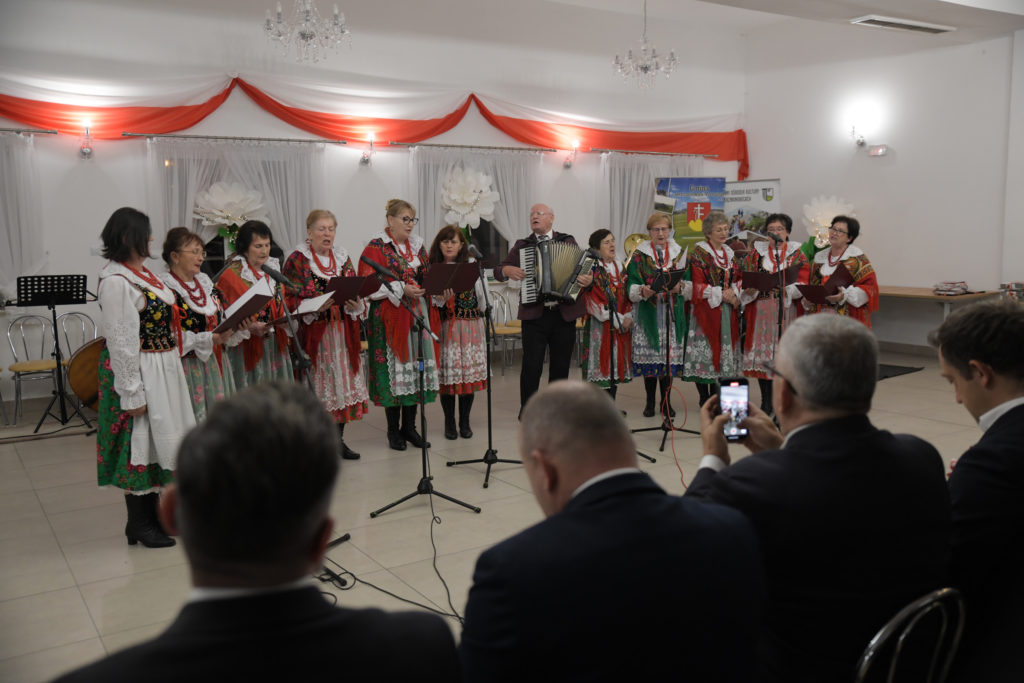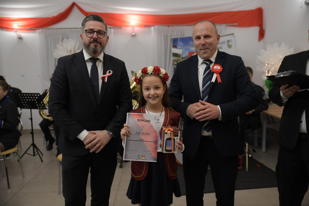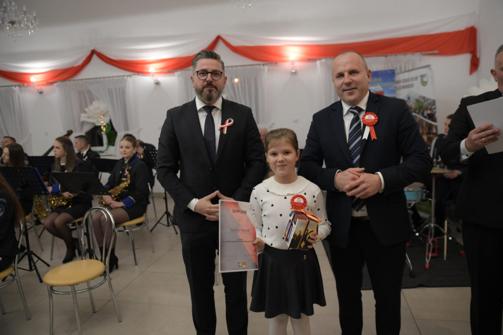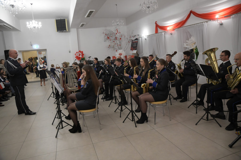 Uroczystość rozpoczęła się od odśpiewania hymnu państwowego przy akompaniamencie Orkiestry Dętej z Przegini.. Po oficjalnym powitaniu uczestników przez Wójta Gminy Tomasza Gwizdałę, rozpoczęła się część artystyczna, która w patriotycznym duchu dostarczyła wielu wzruszeń, dumy i radości z bycia Polakami.