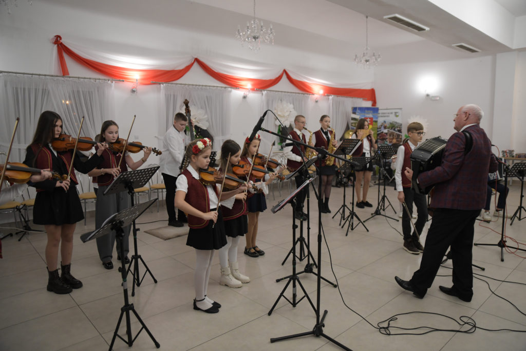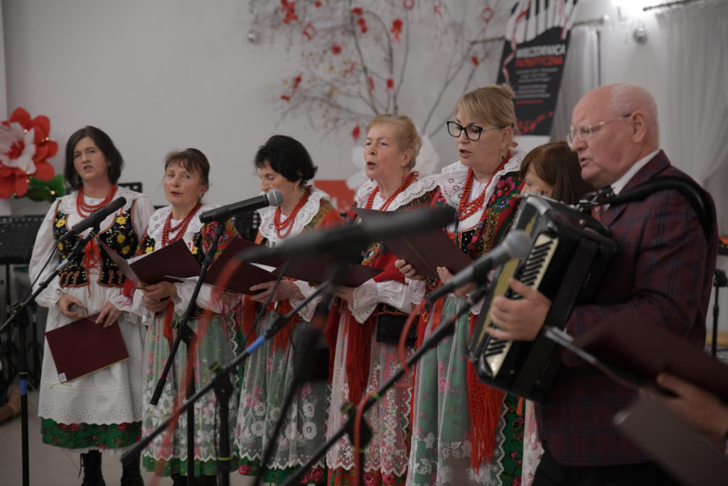 Na scenie zaprezentowali się: zespół taneczny „Dzieci Cygana”, Koło Gospodyń Wiejskich „Przeginianki” oraz zespół „Sokoły” pod dyrekcją Vasyla Stefanyuka. W ich wykonaniu można było podziwiać barwne tańce narodowe i wzruszające pieśni patriotyczne. Nie zabrakło też wyjątkowych występów laureatów Gminnego Konkursu Polskiej Pieśni Patriotycznej: Igora Kowalskiego, Katarzyny Mazur, Leny Stach, Kai Redel i Moniki Nabagło, którzy swoimi talentami podbili serca publiczności.