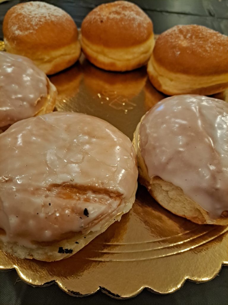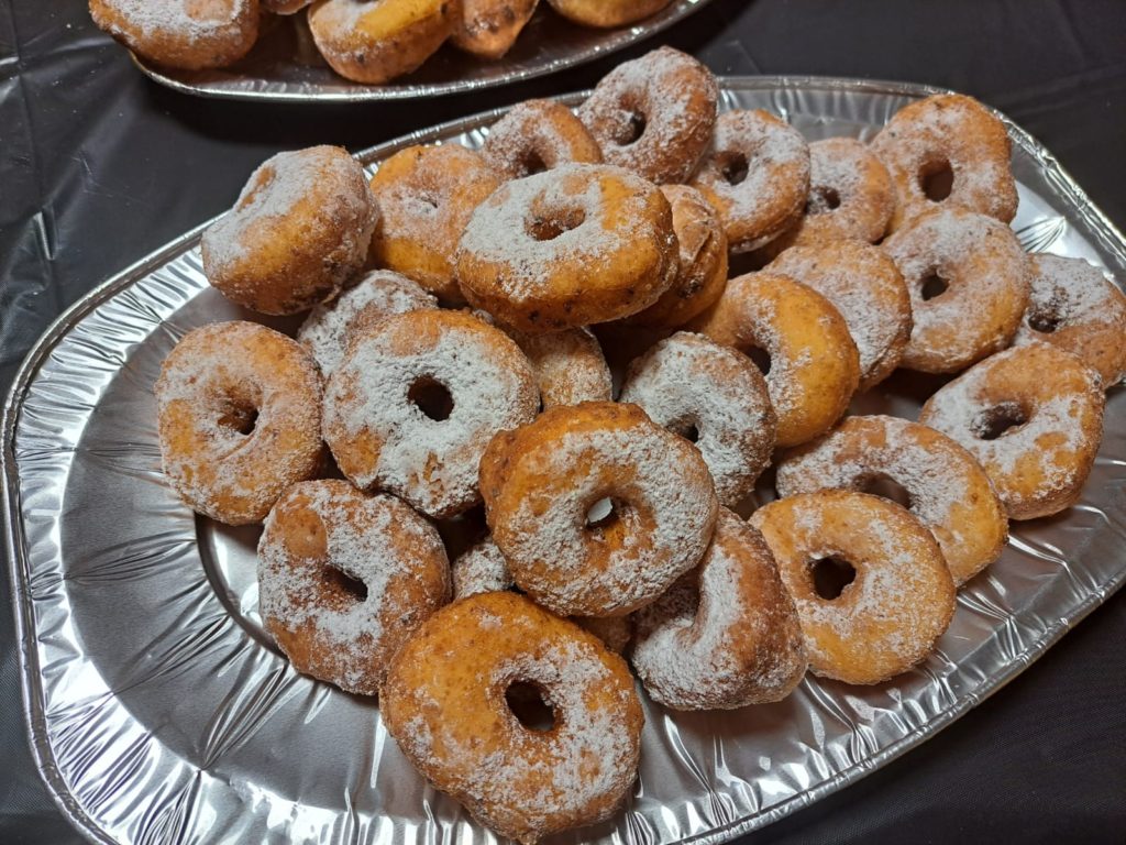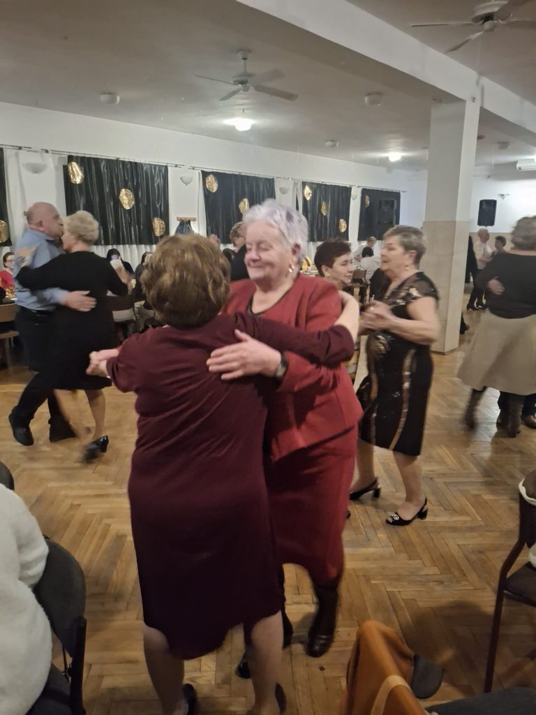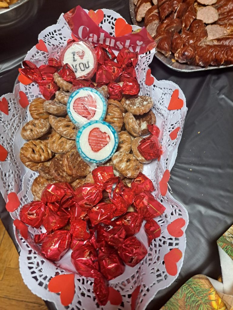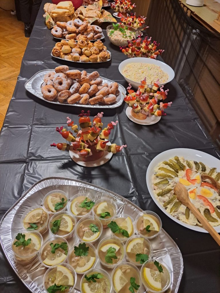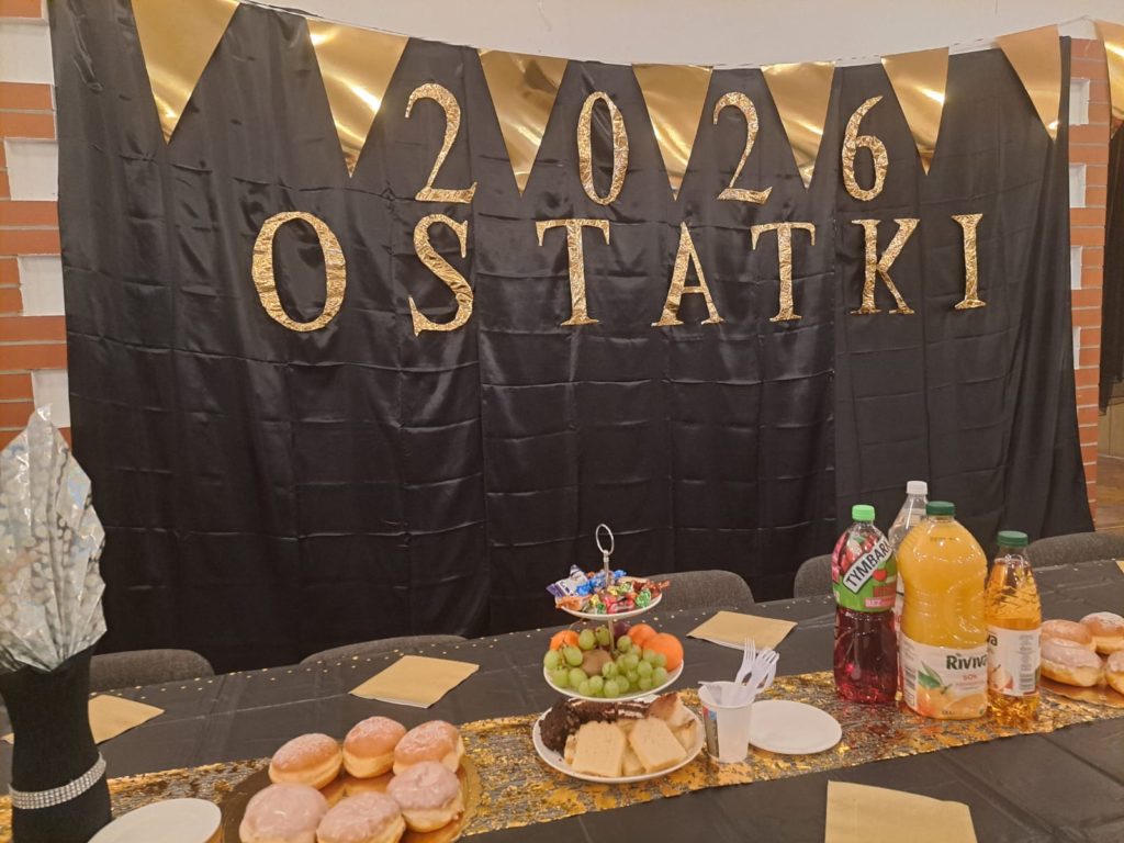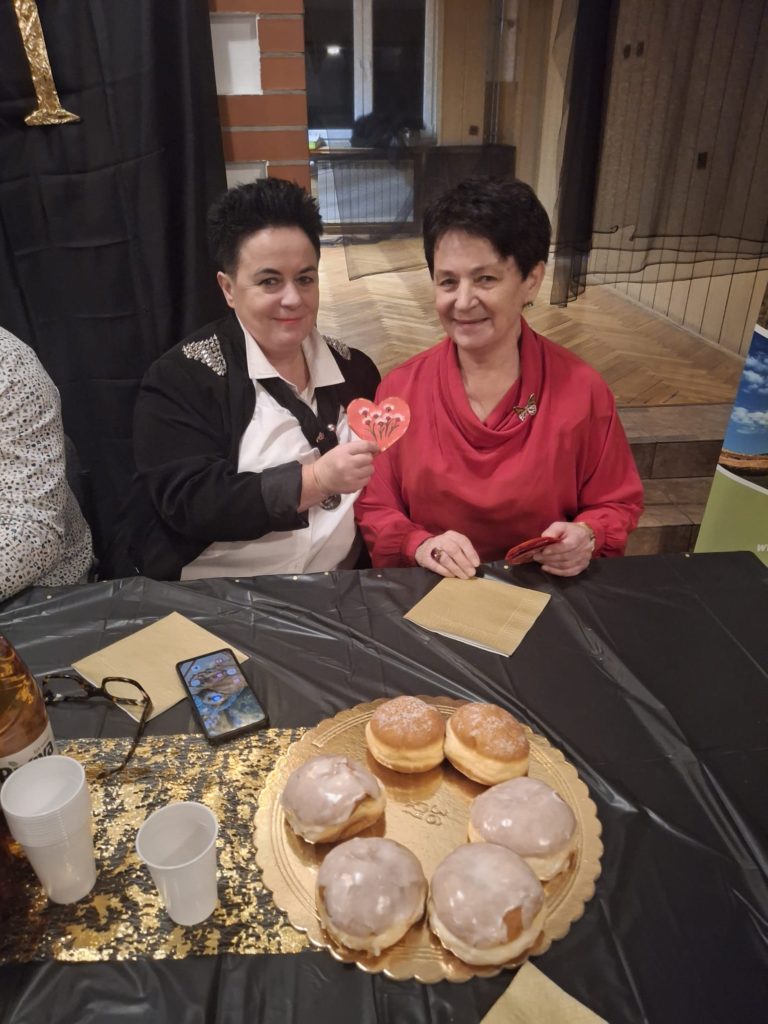 Na stołach nie zabrakło również tradycyjnych ostatkowych przysmaków takich jak pączki, chrupiące faworki oraz oponki które przypomniały o bogatej tradycji karnawałowych spotkań.